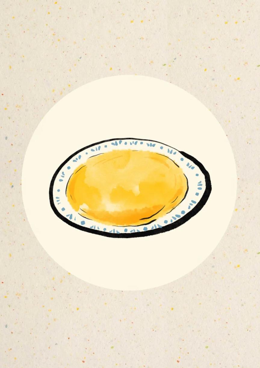 作为一个“老北京”,烤鸭、涮羊肉我是经常吃的,但这个“三不沾”是什么?爸爸看我满脸疑惑的样子笑了,说要带我去吃一次。坐在一家北京风味小馆里,爸爸点了一份“三不沾”。盘子上来时,我不错眼珠地盯着看,禁不住生出几分好奇:盘子里那个圆圆扁扁、黄艳艳的一团还是一片的吃食,就是“三不沾”?我学着爸爸的样子,试着用勺轻轻一挖,就挖下一团。吃到嘴里感觉特别细腻,甜得特别舒服,我突然就想起课文里学过的一个词——“朗润”,那就借这个词改一下,用“甜润”来形容它可太合适了。
